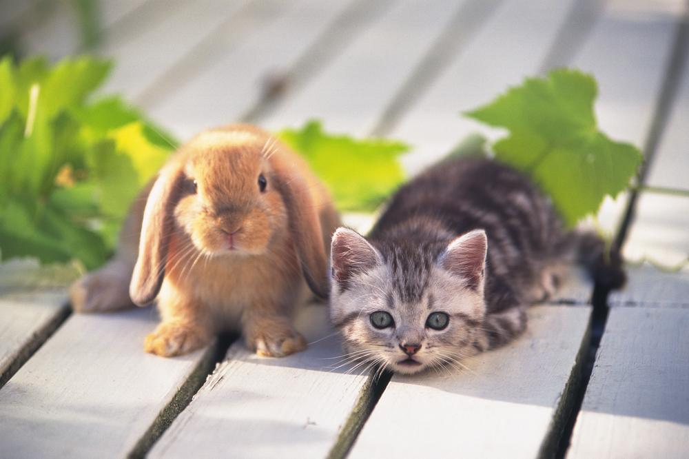 Котенок с кроликом