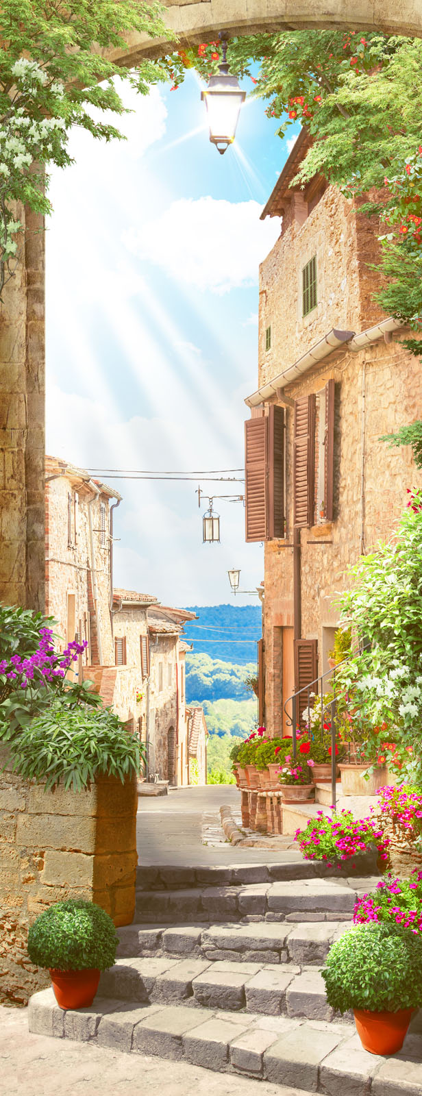 Фотообои Красивая улочка с цветами