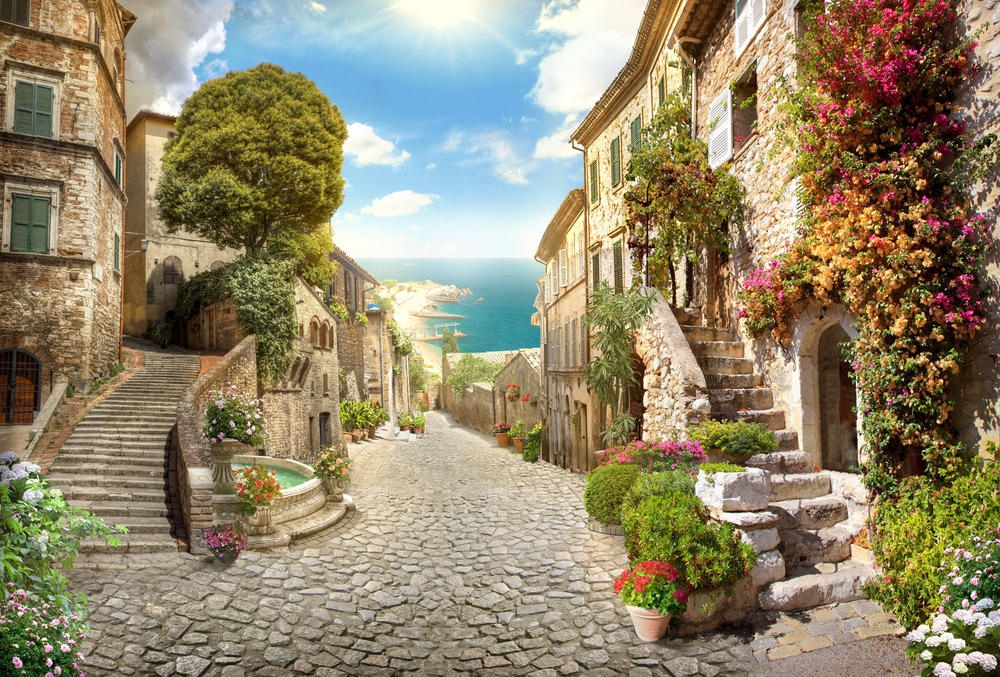 Фотообои Красивая улица с цветами
