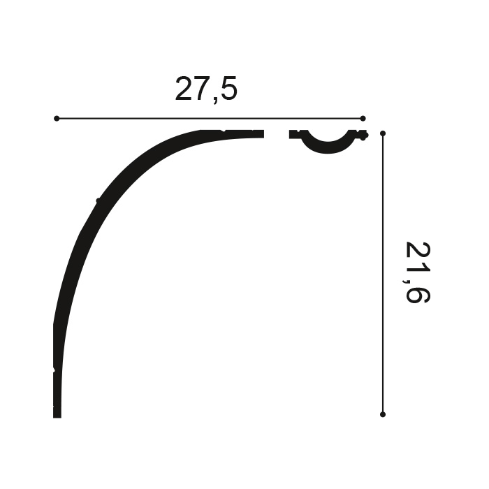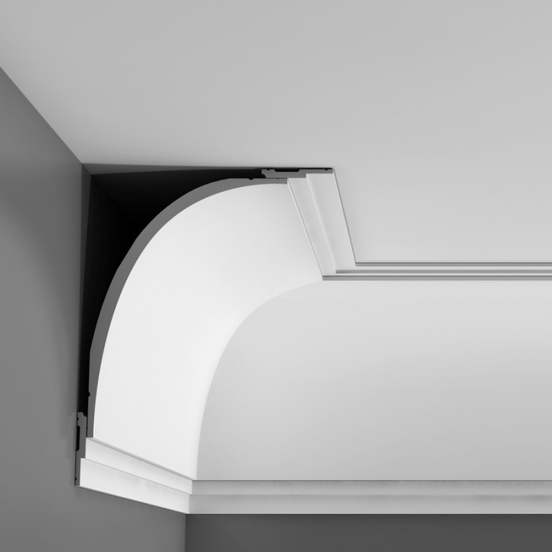 Очень большой, ассиметричный и завораживающий потолочный плинтус с С-образным профилем.