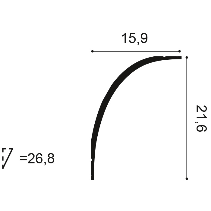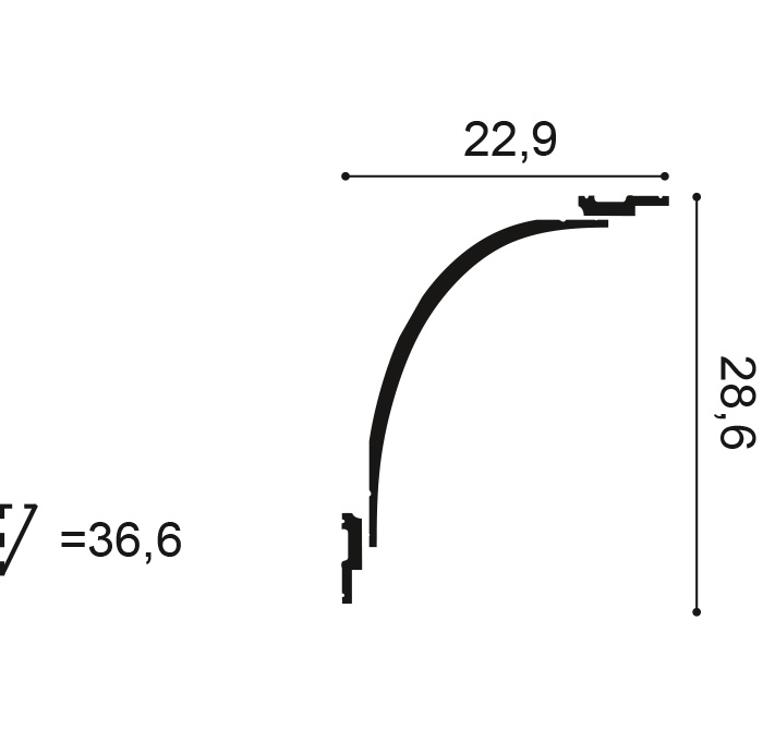 Архитектор Ксавье Донк так описывает это изделие: «Этот карниз называется «выкружка» и напоминает мне стиль старых французских загородных усадеб XVII–XVIII века, прошедший проверку временем, то есть сохранивший свое очарование и по сей день. Такая ассиметричная выкружка прекрасно сочетается со смелым «лестничным» карнизом или молдингом, который мы называем «шляпой Наполеона» (модель P9901). Для установки этого карниза можно выбрать любой способ, вдоль стены или потолка, в зависимости от ваших предпочтений».