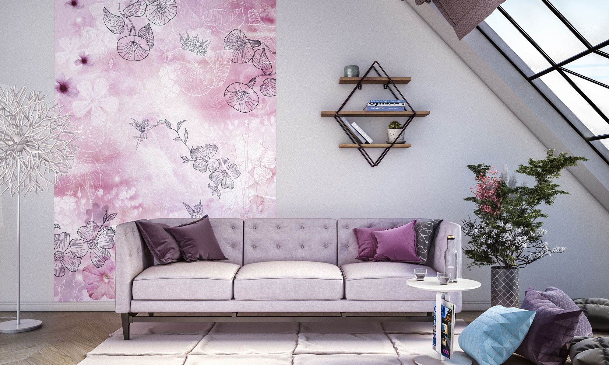 Магия Диснея: на нежном коллаже феи прячутся в море цветов всех оттенков розового.