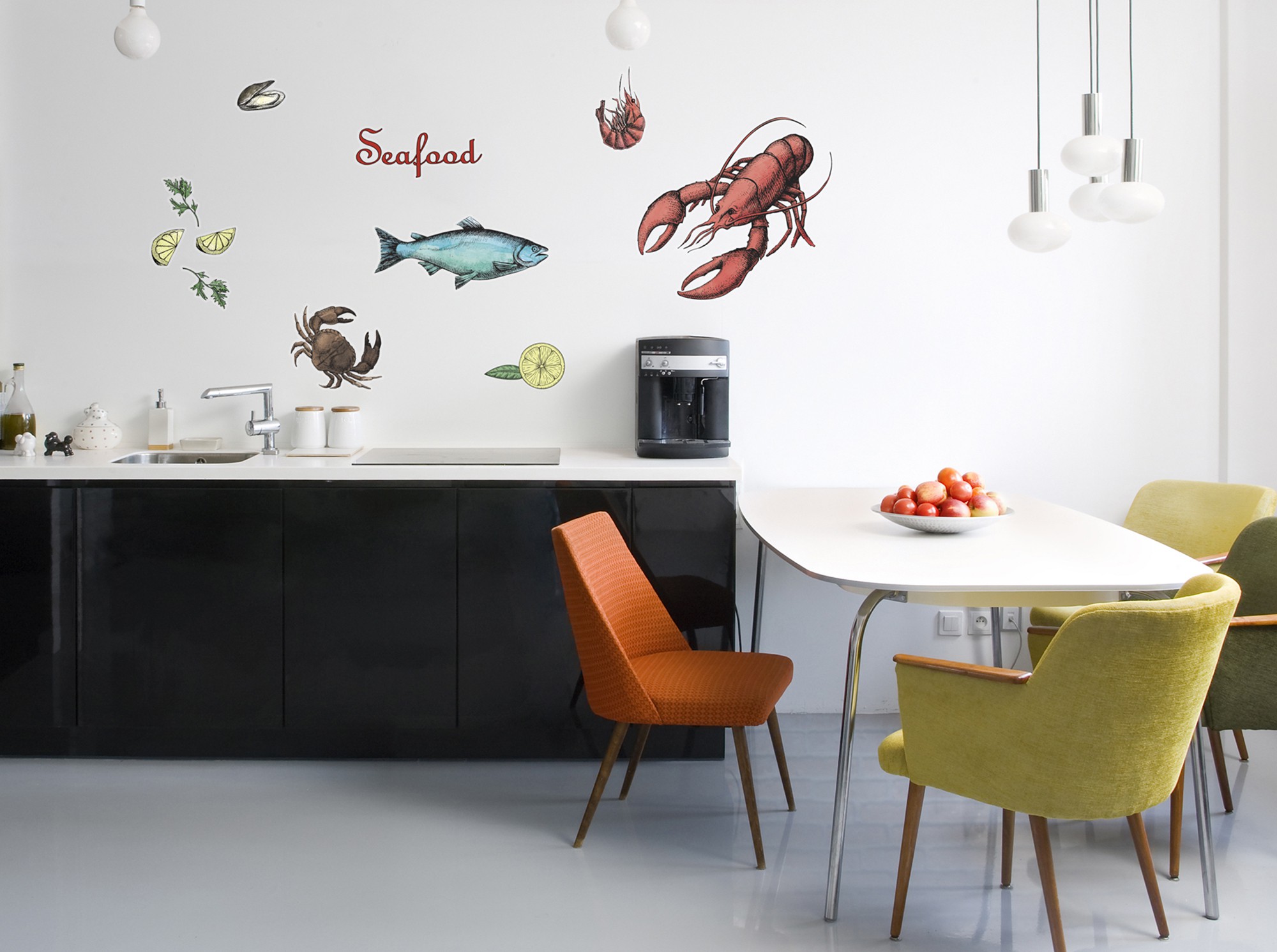 Средиземноморское настроение на кухне: благодаря татуировке для стены с изображением морепродуктов - омара, рыбы, мидии и других – в Ваш дом попадают деликатесы средиземноморских регионов!