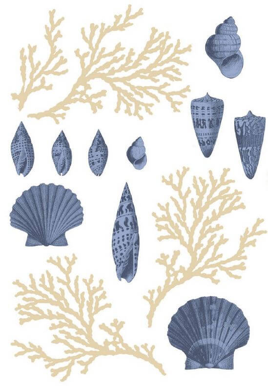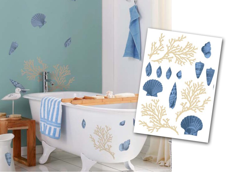 Раковины и кораллы как популярные коллекционные предметы используют для декорирования стен и ванных комнат.