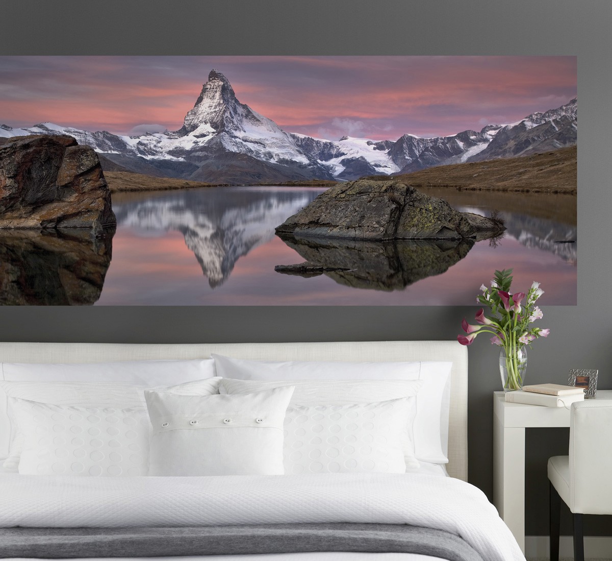 Живописные горы, обласканные лучами заходящего солнца.
