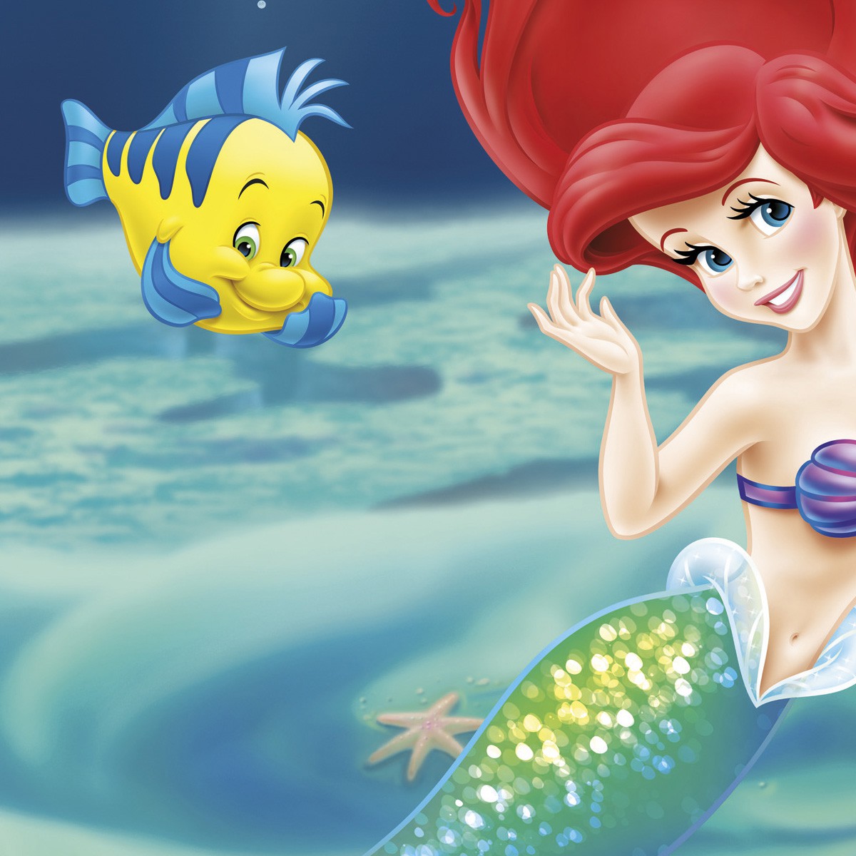На дне морском: Ариэль вместе с лучшим другом Флаундером и придворным музыкантом Себастьяном.