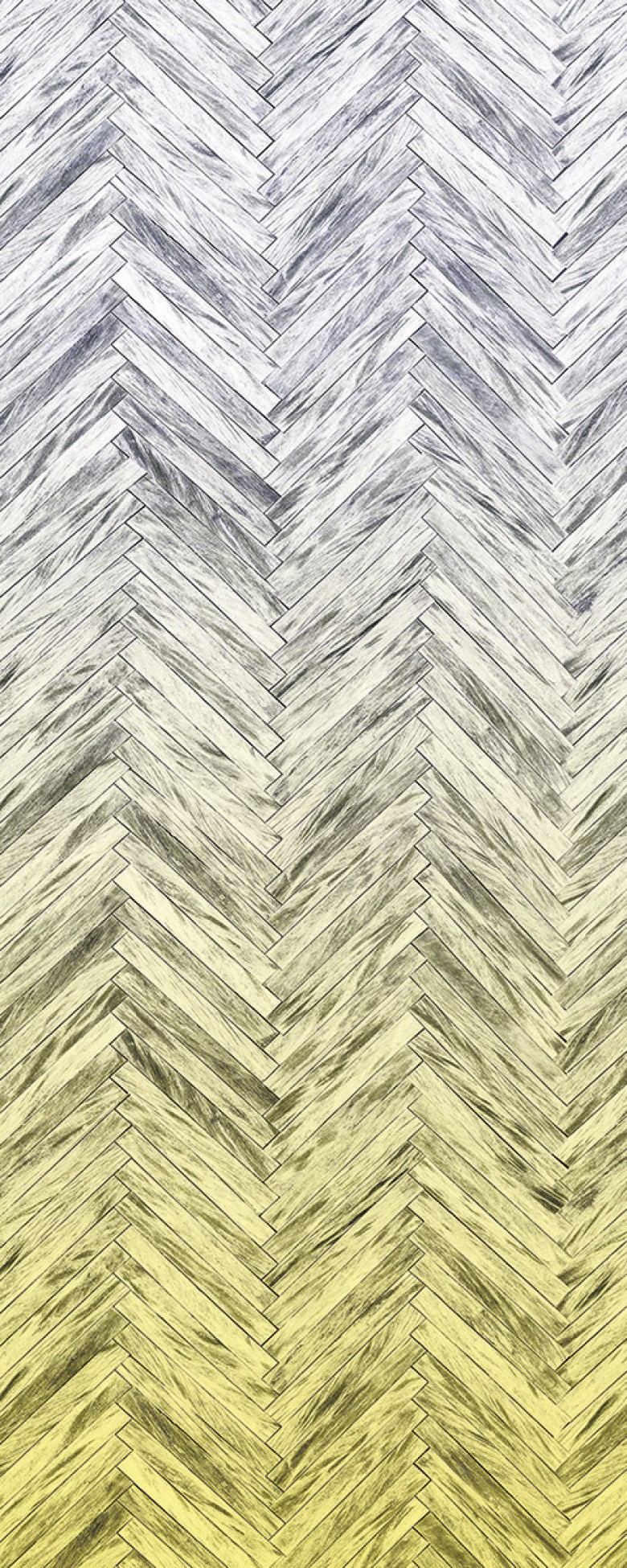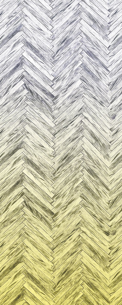 Altes Holz ganz neu: Fischgratparkett mit modernem Farbverlauf in Gelb.