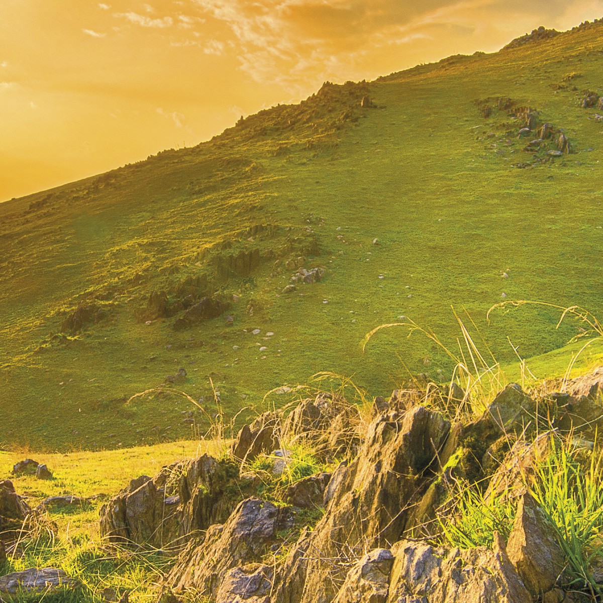 Восходящее солнце озаряет янтарными лучами безлесные скалистые склоны горы Брекенридж в Калифорнии, США.