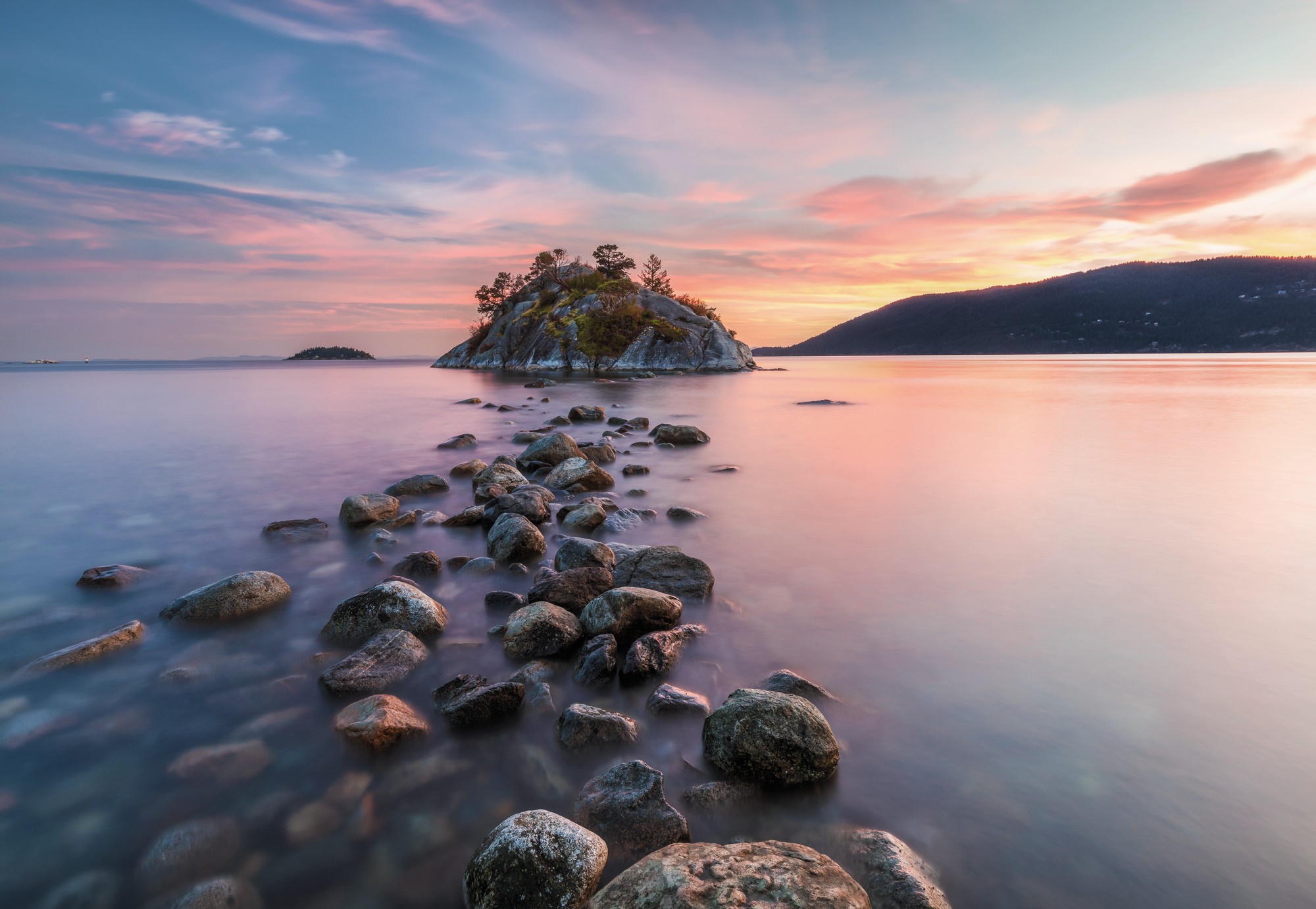 Красивый в любое время суток Парк Уитеклифф на западе канадского Ванкувера особенно впечатляет своими видами на закате. Зеркальная поверхность моря Селиш отражает игру розовых и фиолетовых облаков на фоне неба. В толще воды примыкающего к парку океана обитают самые разные морские организмы. В 1993 году этот участок был одним из первых признан охраняемой морской зоной Канады.