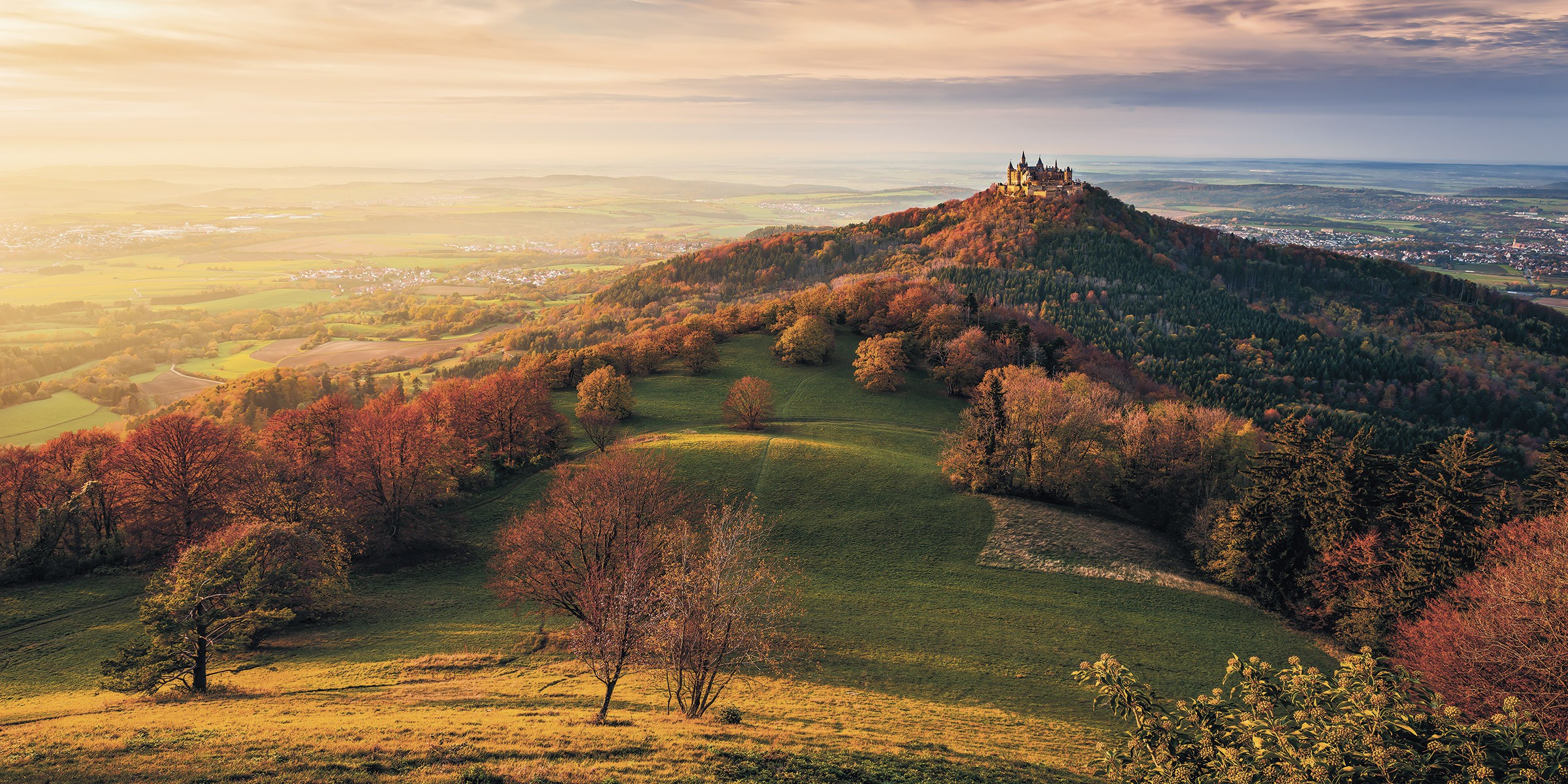 В золоте осеннего солнца замок Гогенцоллернов величественно возвышается над Швабским Альбом.