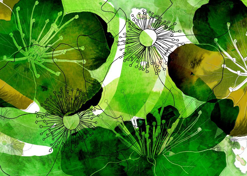 Фантастические цветы в море совершенно очаровательного зеленого оттенка.