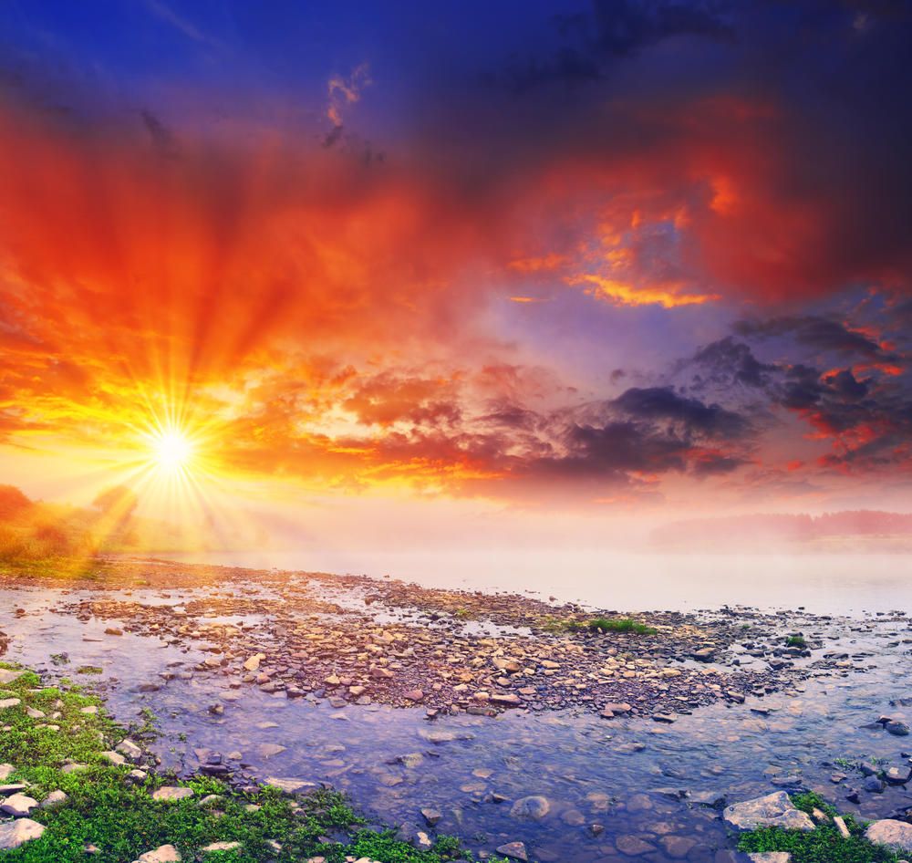 —Оранжевый рассвет на озере