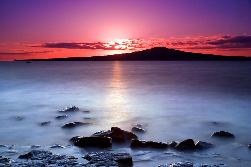 —Розовый закат и туман