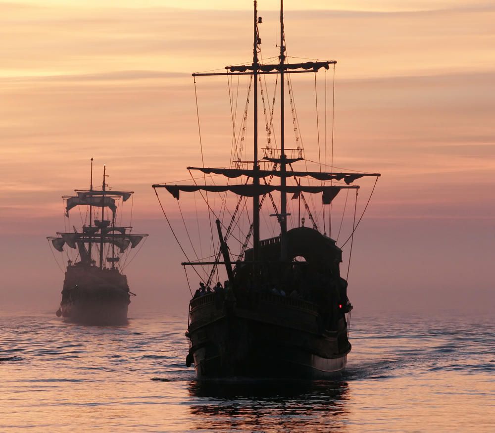 Корабли на фоне заката