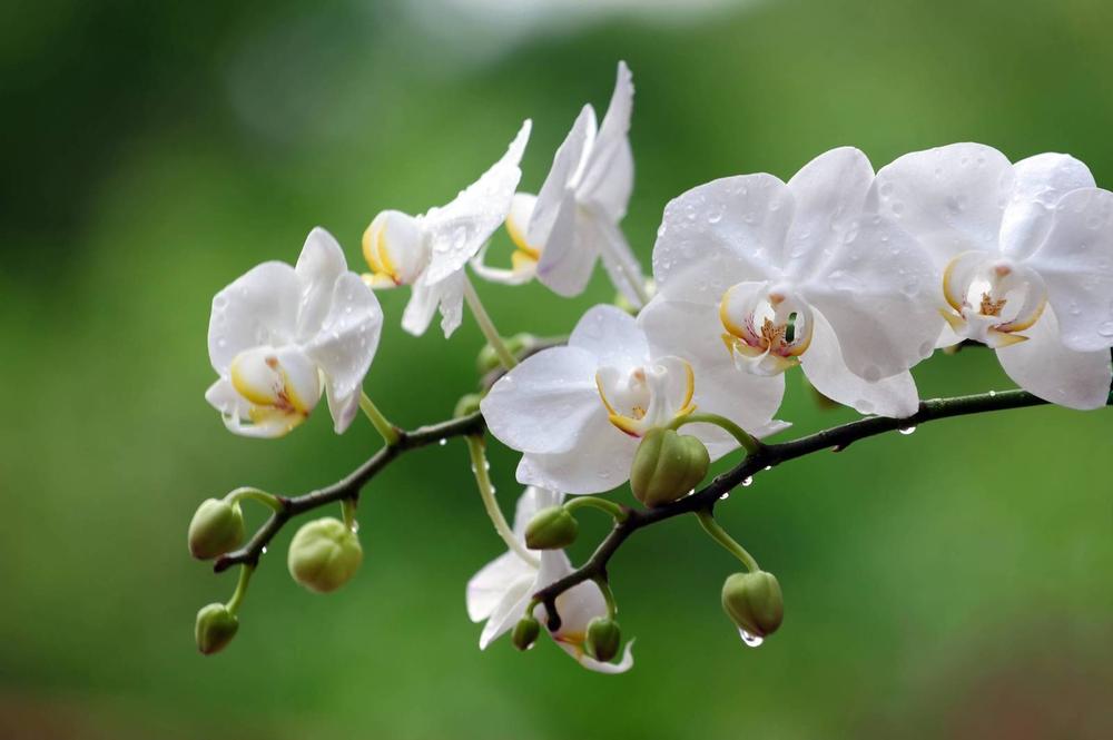 Белые орхидеи на зеленом фоне