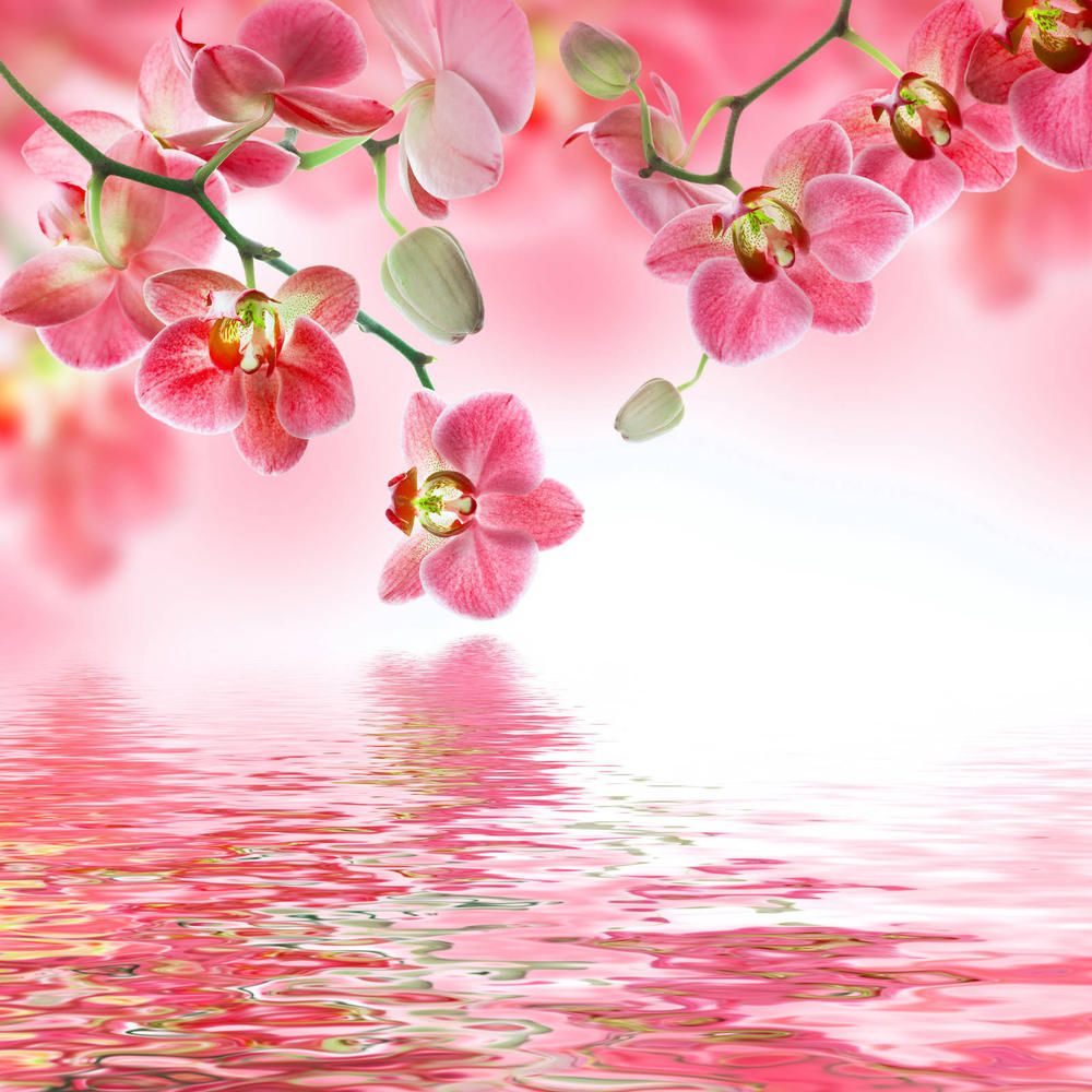 Розовые цветы над водой