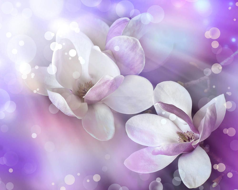 Магнолии на сиреневом фоне