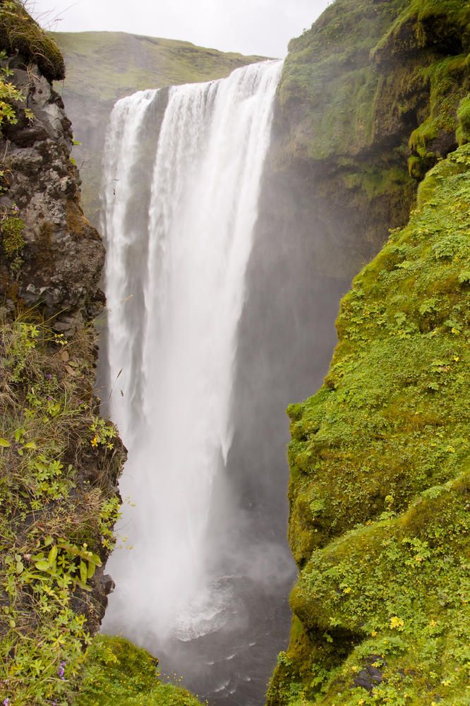 Вид на водопад через ущелье