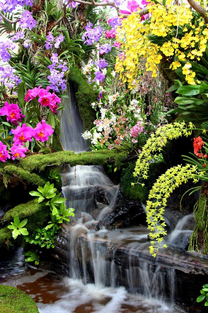 Цветы и водопад