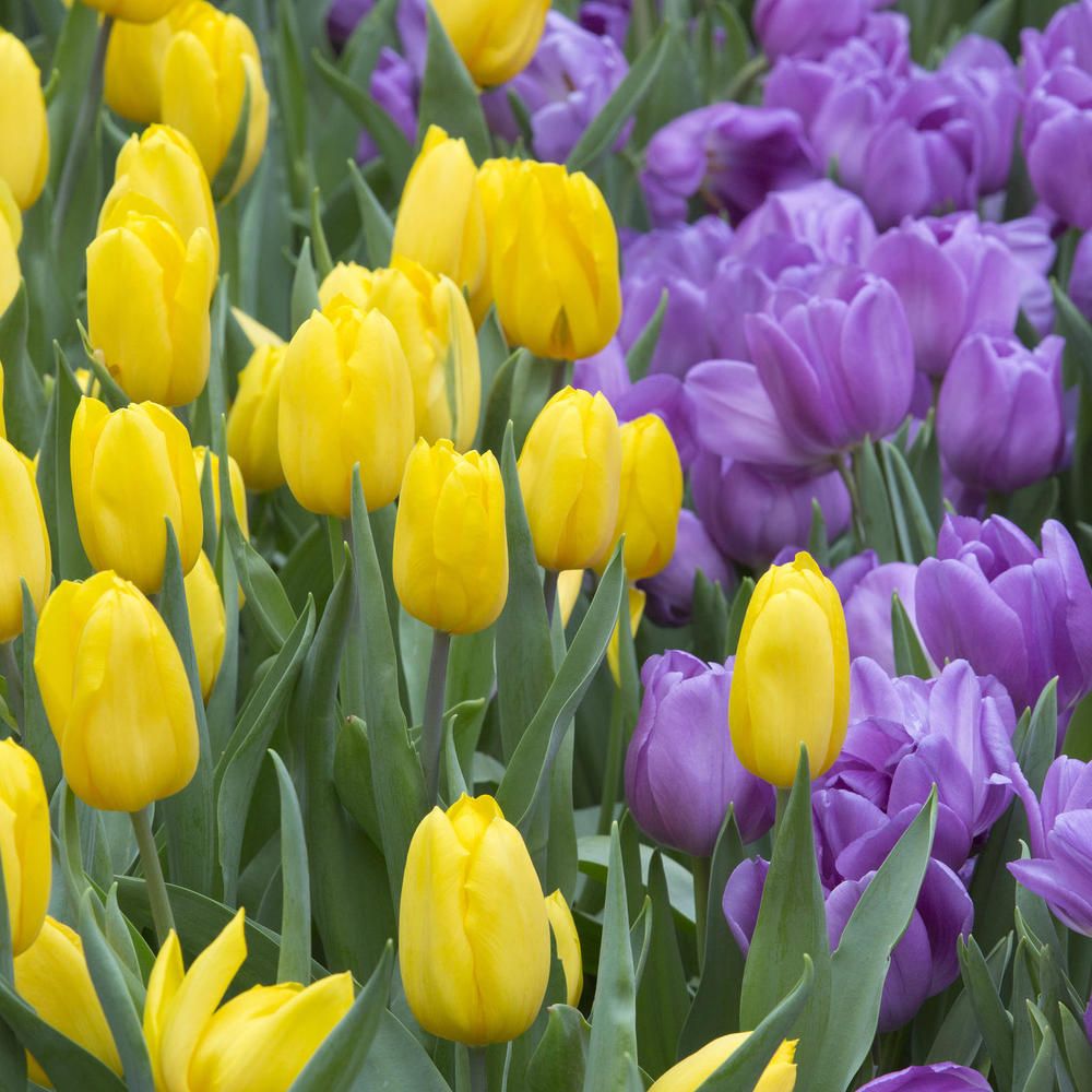 —Желтые и сиреневые тюльпаны