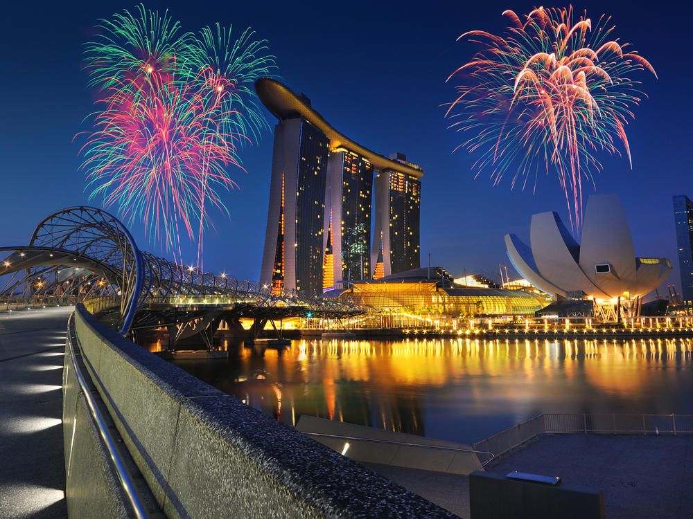 —Ночной город на фоне салюта