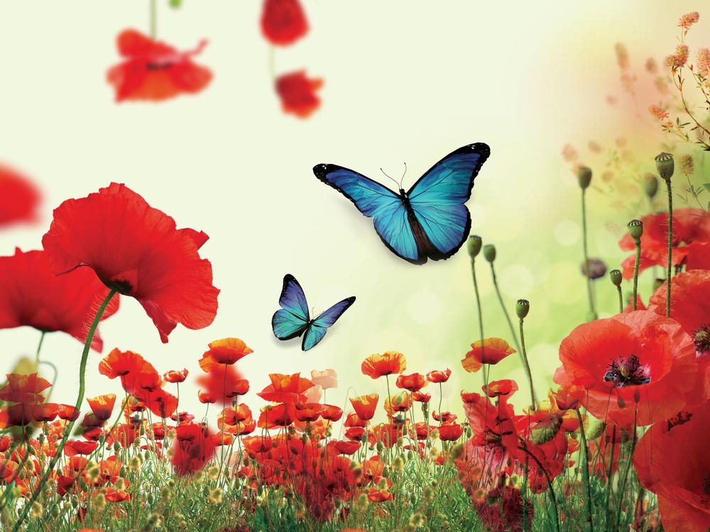 Бабочки над маками
