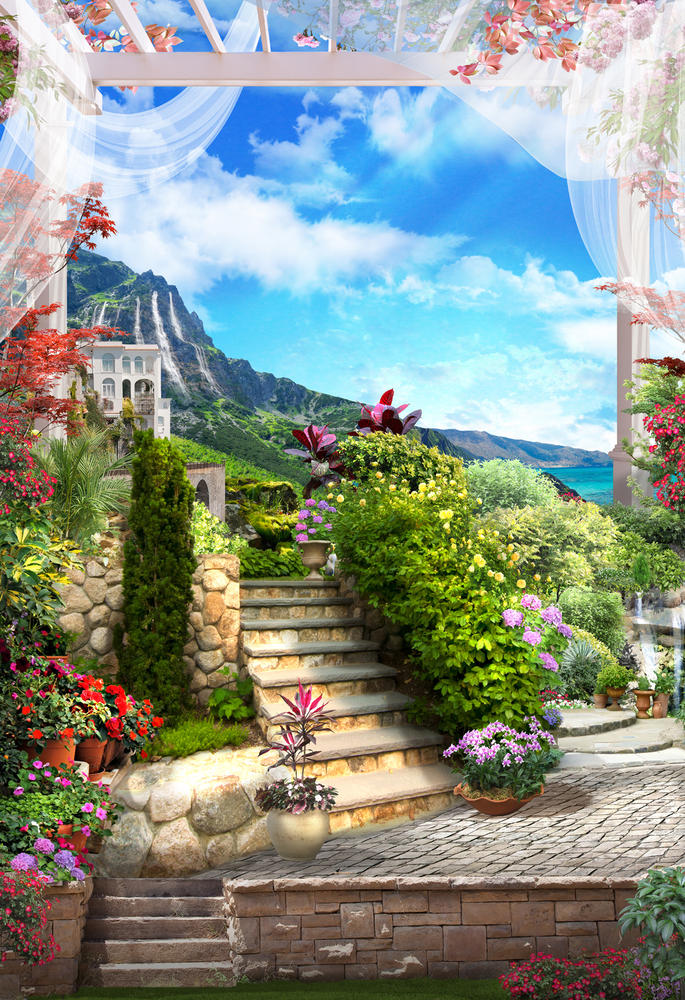 —Фреска: сад возле моря