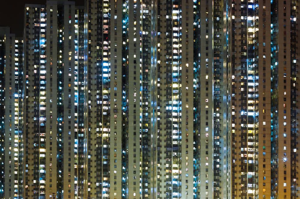 —Окна современных небоскребв большого города