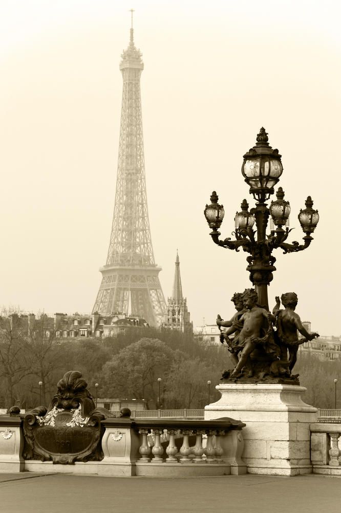 Вид на Эйфелеву башня в пасмурном Париже
