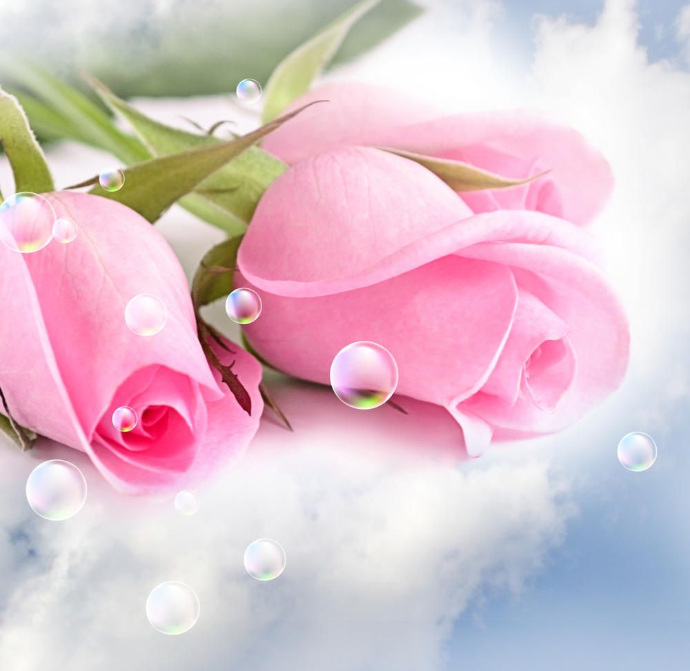 Розовые розы и капли