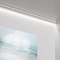 Профиль строгого дизайна из серии Steps. C390 прекрасно послужит как оригинальный модернистский карниз или как практичный способ скрыть направляющие рейки штор или светодиодный светильник. Кроме того, скошенный угол на верхней и нижней кромке создает легкую затененную линию, еще более подчеркивая игру света и тени.